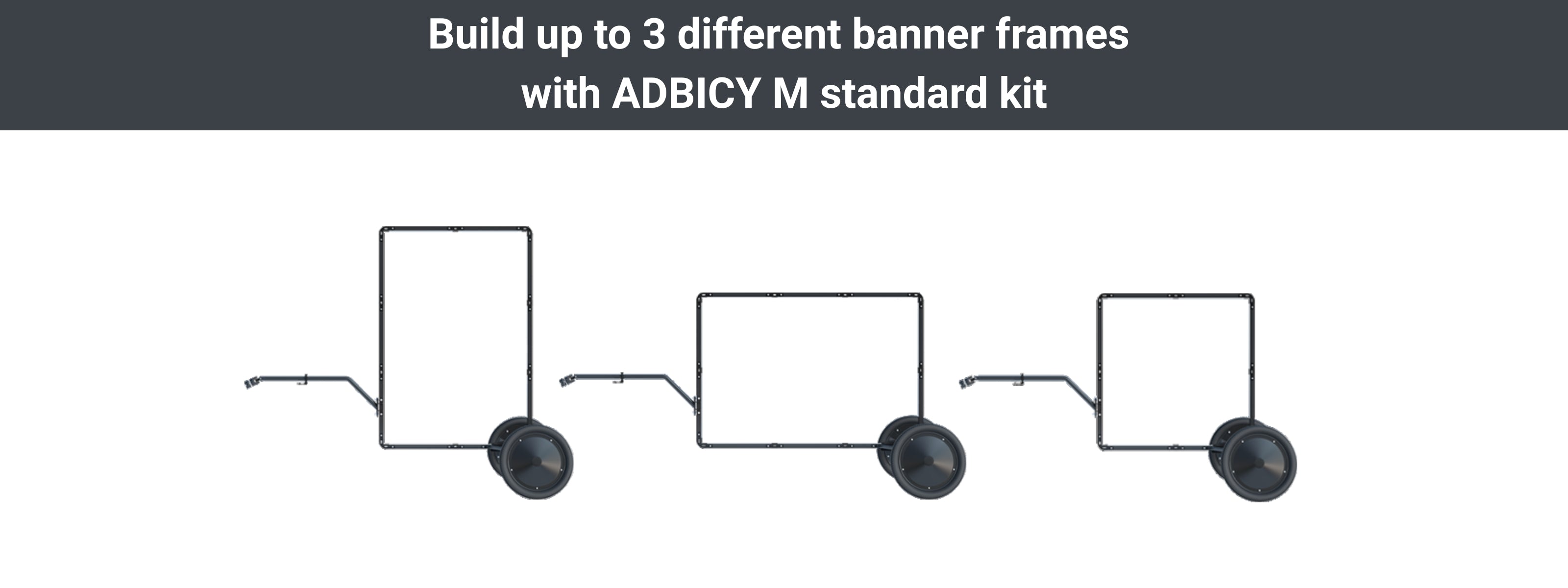 Le kit standard AdBicy M peut être assemblé en 3 configurations différentes de panneaux d'affichage avec différentes tailles. Avec le Kit d'Extension optionnel, vous pouvez créer 4 configurations supplémentaires, pour un total de 7 tailles de cadre.