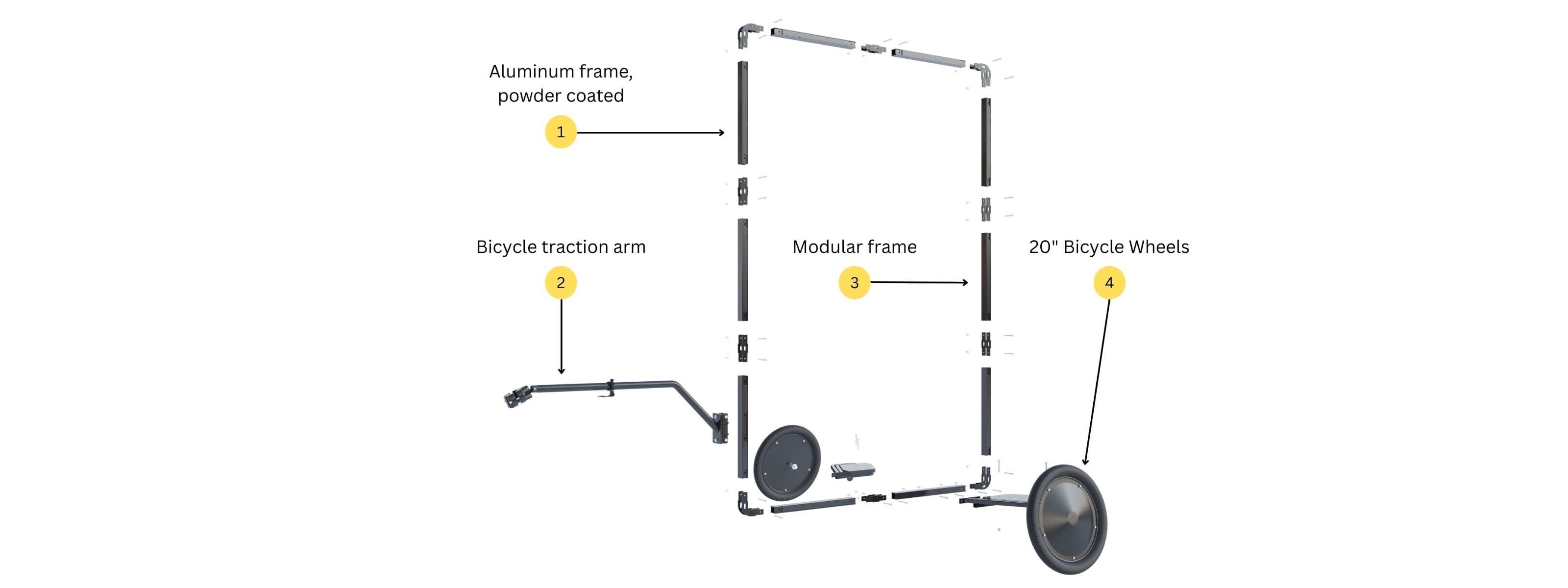 Construit à partir d'un cadre en aluminium léger mais robuste avec des essieux en acier renforcé, AdBicy M allie durabilité et maniabilité quotidienne facile. Équipé de roues de vélo de 20", la remorque roule en douceur dans les rues de la ville, les zones piétonnes et les lieux d'événements, portant votre message exactement là où se trouve votre public.
