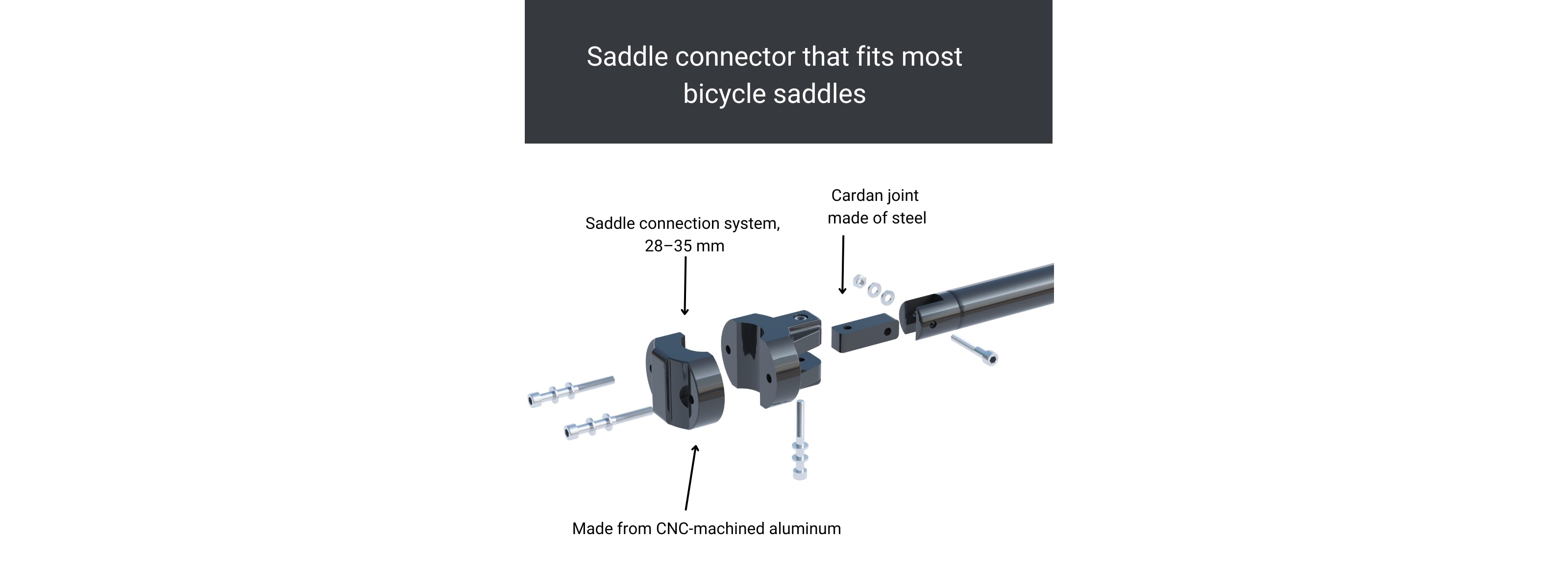 AdBicy M se connecte au vélo via un attelage de montage sur selle, qui se fixe